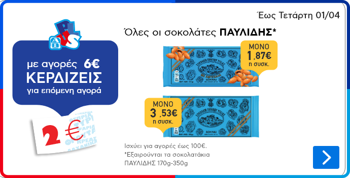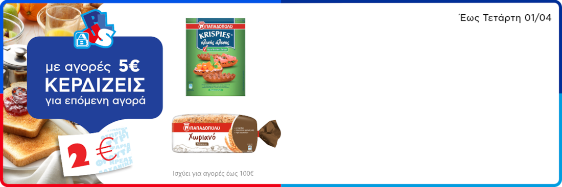 - Κέρδισε επιταγή έκπτωσης 2€ αγοράζοντας 5€ σε όλα τα ψωμιά, κριτσίνια & krispies ΠΑΠΑΔΟΠΟΥΛΟΥ