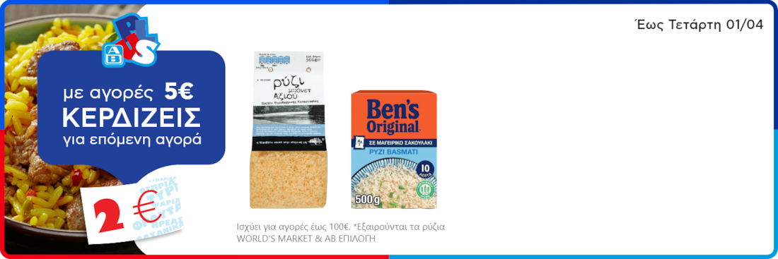 - Κέρδισε επιταγή έκπτωσης 2€ αγοράζοντας 5€ σε όλα τα ΡΥΖΙΑ*