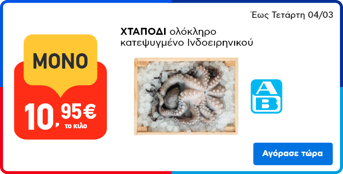 - Κέρδισε επιταγή έκπτωσης 6€ αγοράζοντας 12€ σε όλα τα ΚΑΤΕΨΥΓΜΕΝΑ ΨΑΡΙΑ & ΘΑΛΑΣΣΙΝΑ