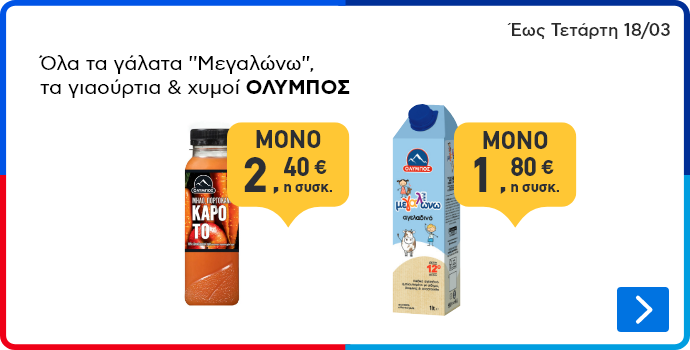 - Κέρδισε επιταγή έκπτωσης 2€ αγοράζοντας 6€ σε όλα τα ΤΥΡΙΑ ΤΟΥ ΤΟΣΤ ΣΕ ΦΕΤΕΣ χύμα και τυποποιημένα