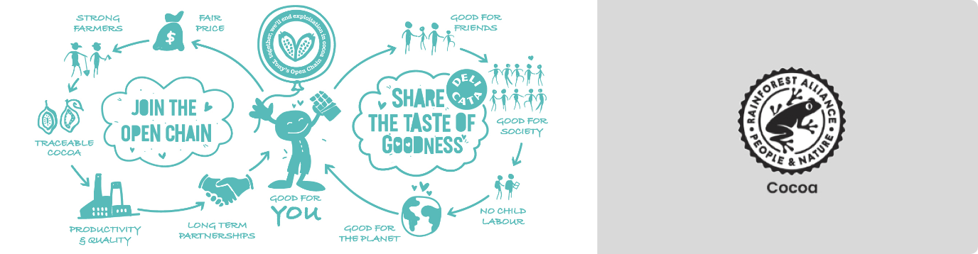 Οι σοκολάτες Delicata παράγονται με αγάπη και σεβασμό για τους ανθρώπους και το περιβάλλον, αφού παρασκευάζονται με βιώσιμο τρόπο, χωρίς σύγχρονη σκλαβιά και παράνομη παιδική εργασία, ενώ παράλληλα στηρίζουν τους τοπικούς αγρότες στις χώρες στις οποίες καλλιεργείται το κακάο.