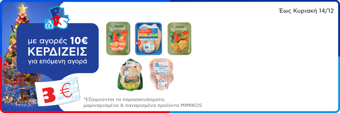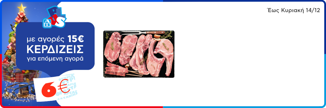 - Κέρδισε επιταγή έκπτωσης 6€ αγοράζοντας 15€ σε όλο το φρέσκο ΕΛΛΗΝΙΚΟ ΧΟΙΡΙΝΟ χύμα & τυποποιημένο