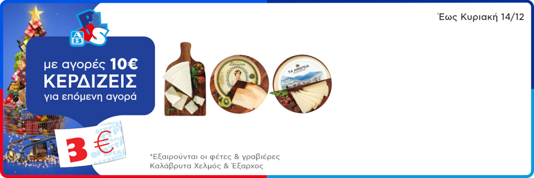 - Κέρδισε επιταγή έκπτωσης 3€ αγοράζοντας 10€ σε όλες τις ΦΕΤΕΣ & ΓΡΑΒΙΕΡΕΣ χύμα & τυποποιημένες*