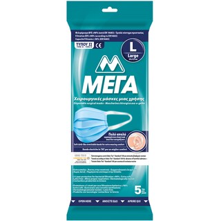 Μάσκες Χειρουργικές Μίας Χρήσης Large 5 Τεμάχια