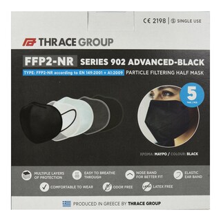Μάσκες Φιλτραρίσματος FFP2 Αναδιπλούμενες Μαύρες 5 Τεμάχια