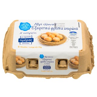 Αυγά Εξαιρετικά Φρέσκα Αχυρώνα Large 6 Τεμάχια