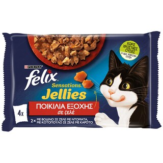 Γατοτροφή Sensations Jellies Βοδινό & Κοτόπουλο 4x85g