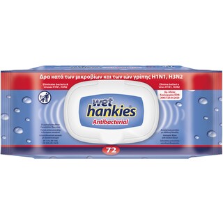 Υγρά αντιβακτηριδιακά μαντήλια χεριών χεριών με οινόπνευμα και επιπλέον αντισηπτικό παράγοντα. 35% μεγαλύτερα σε σχέση με τα σημερινά μαντήλια Wet Hankies Antibacterial 15 τεμαχίων. Δρουν αποτελεσματικά ενάντια στα μικρόβια και τους ιούς της γρίπης Η1Ν1, Η3Ν2. Ελεγμένα με βάση τα Ευρωπαϊκά πρότυπα ΕΝ1276, ΕΝ1500, ΕΝ1650, ΕΝ14476. Είναι εγκεκριμένα από τον Ε.Ο.Φ. Με άρωμα καθαριότητας.