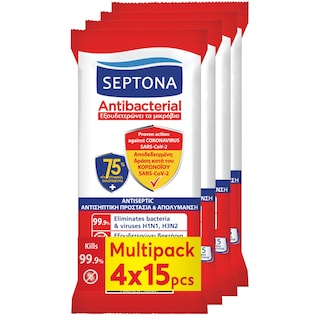Αντιβακτηριδιακά Μαντηλάκια 75% Οινόπνευμα 4x15 Τεμάχια