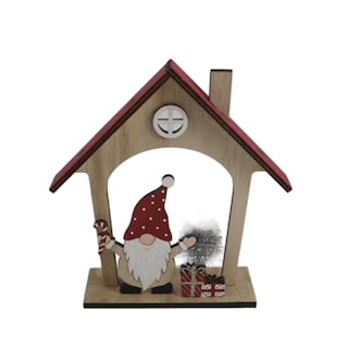Διακοσμητικό Ξύλινο Σπιτάκι με Άγιο Βασίλη 1 Τεμάχιο