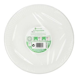 Πιάτα Βιοδιασπώμενα 23cm Λευκά 10 Τεμάχια