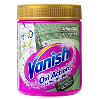 Έχετε εντοπίσει ένα λεκέ στα ρούχα σας που δεν νομίζετε ότι μπορείτε να αφαιρέσετε; Μην φοβάστε! Το Vanish Oxi Action Σκόνη είναι ενισχυτικό πλύσης χωρίς χλώριο που αφαιρεί λεκέδες ακόμη και σε κρύο νερό, αφαιρεί δυσάρεστες οσμές και αναζωογονεί τα χρώματα. Είναι ασφαλές για καθημερινά υφάσματα (όπως βαμβακερά και πολυεστερικά) χρωματιστά και λευκά.
