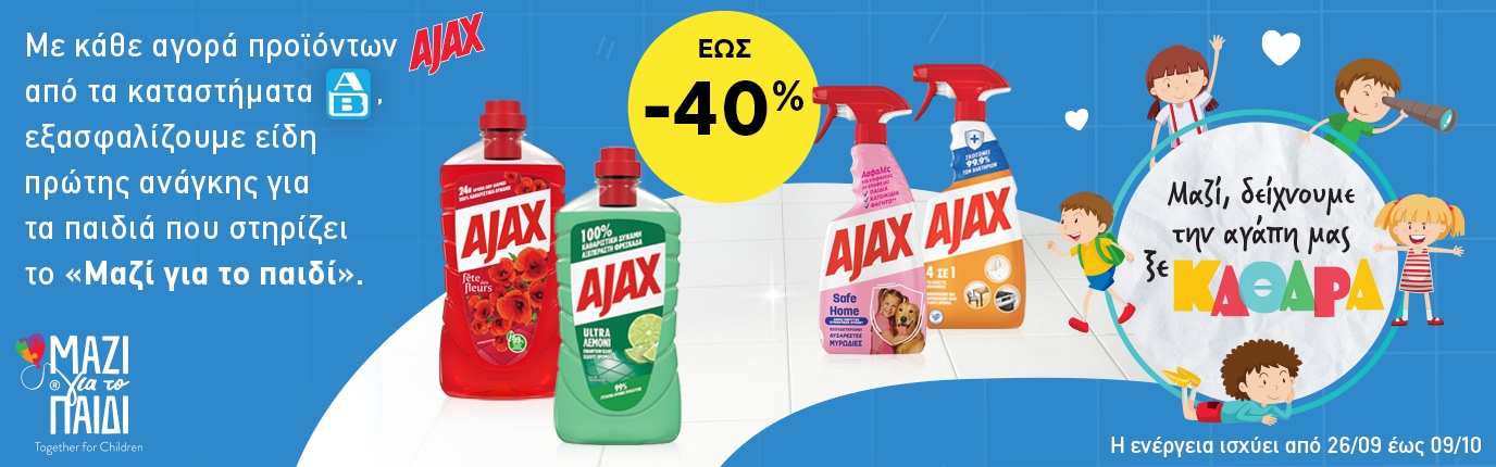 Απο 26/09/2024 έως και 09/10/2024, στα καταστήματα ΑΒ μπορείς να βρεις προϊόντα AJAX