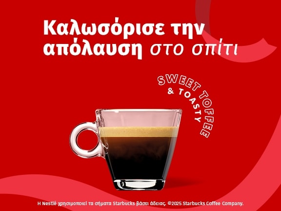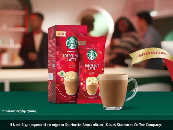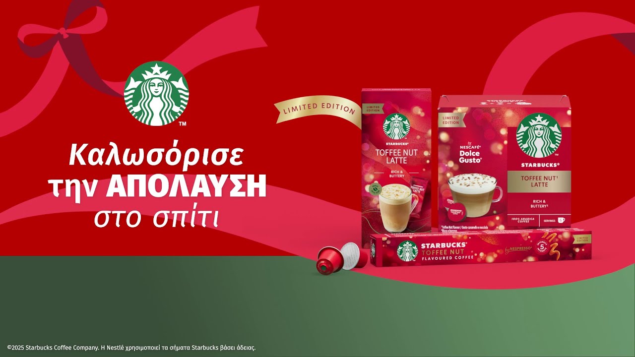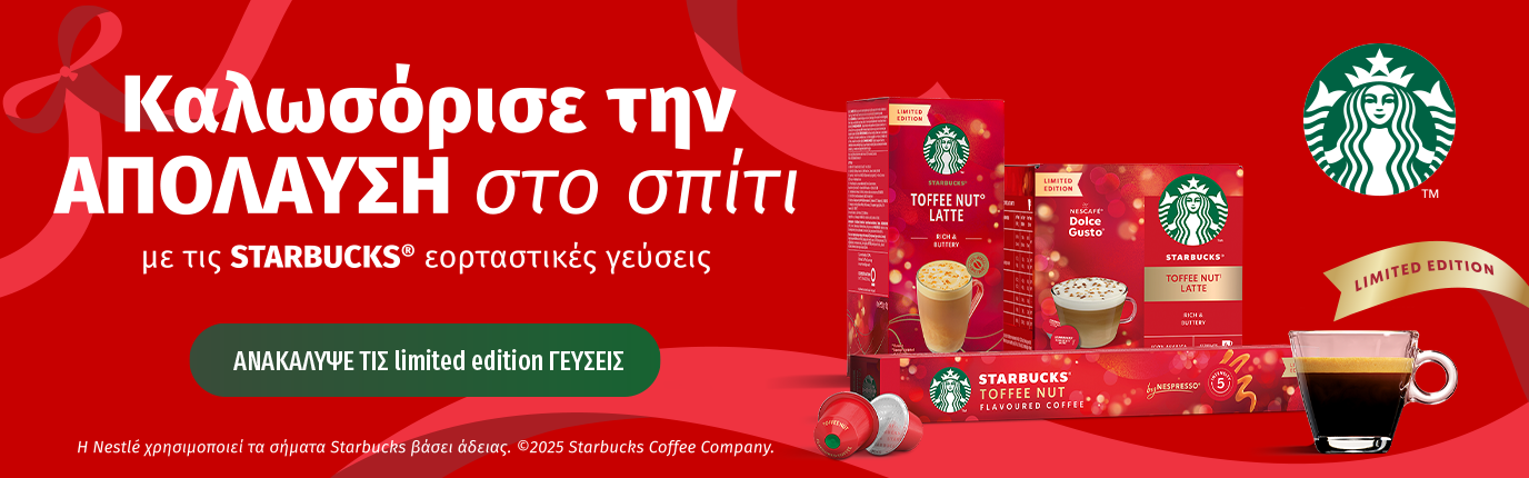 Κάνε τις γιορτές σου ΠΙΟ ΑΠΟΛΑΥΣΤΙΚΕΣ, με τις αγαπημένες εορταστικές, limited edition γεύσεις Starbucks® και τις συνταγές μας εμπνευσμένες από τα café Starbucks®, για περιορισμένο χρονικό διάστημα. Απόλαυσε ξανά την αγαπημένη γεύση Starbucks® Toffee Nut by Nespresso για μηχανές Nespresso® Original ή αφέσου στη γνώριμη ζεστασιά ενός ροφήματος Starbucks® Toffee Nut Latte by Nescafé® Dolce Gusto®. Φέτος μπορείς να δοκιμάσεις και το Starbucks® Toffee Nut Latte Premium Ρόφημα καφέ, ένα απολαυστικά ιδιαίτερο ρόφημα καφέ για να απολαύσεις στην άνεση του σπιτιού σου!! Είναι όλα εδώ για σένα, να τα απολαύσεις στο σπίτι με τον δικό σου τρόπο, με παρέα ή χωρίς, κάνοντας απολαυστική κάθε σου στιγμή!! 🎁