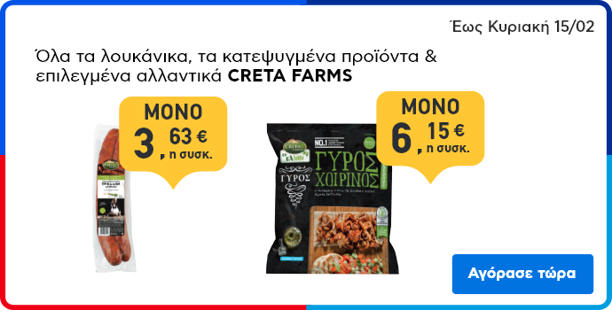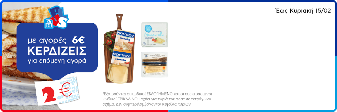 - Κέρδισε επιταγή έκπτωσης 2€ αγοράζοντας 6€ σε όλα τα ΤΥΡΙΑ ΤΟΥ ΤΟΣΤ ΣΕ ΦΕΤΕΣ* χύμα & τυποποιημένα