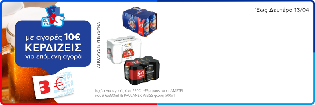 - Κέρδισε επιταγή έκπτωσης 3€ αγοράζοντας 10€ σε όλες τις ΜΠΙΡΕΣ*