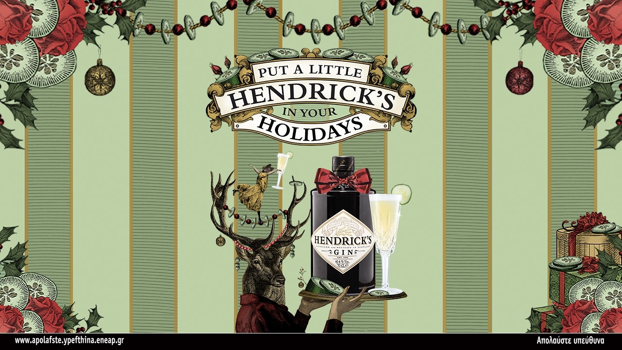 Kάνε τις γιορτές σου ακόμα πιο ξεχωριστές με το Hendrick’s Gin. Το πιο unusual gin το οποίο εκχυλίζεται με αγγούρι και ροδοπέταλα είναι η ιδανική επιλογή για να το απολαύσεις με τα αγαπημένα σου πρόσωπα ή να το προσφέρεις ως ένα μοναδικά ιδιαίτερο δώρο.