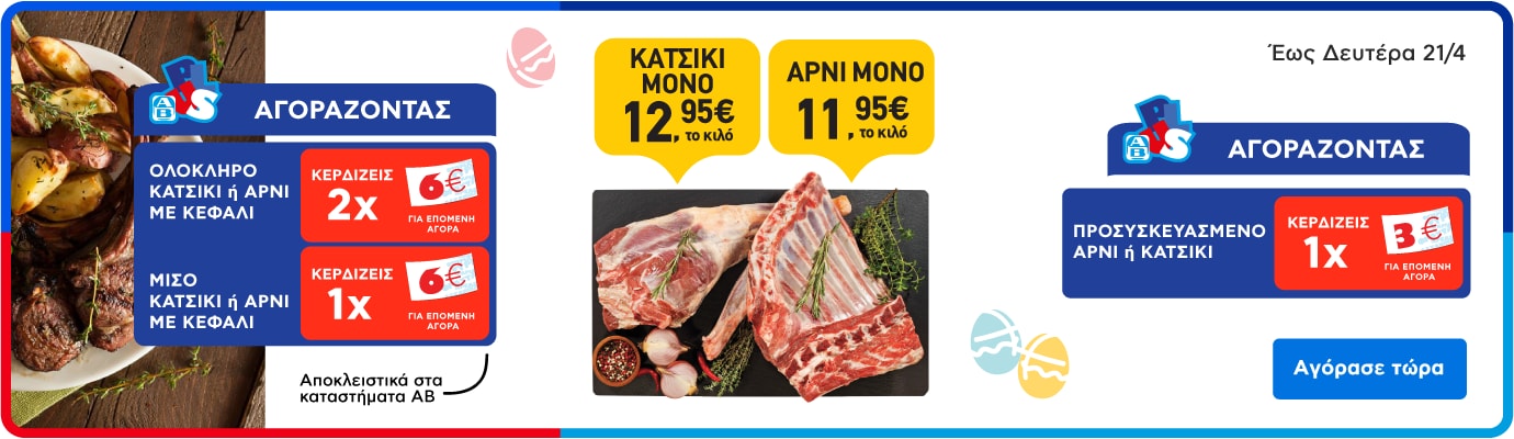 Με έως 20 ευρώ απόλαυσε ένα γευστικό πασχαλινό μενού με λαχταριστές επιλογές από τα ΑΒ!