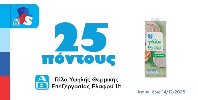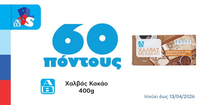 Ενεργοποίησέ τα με ένα κλικ, εύκολα και γρήγορα, στην AB Plus σου από τον λογαριασμό σου στο AB App ή στο ab.gr και κέρδισε στις αγορές σου στα καταστήματα και το AB Eshop.