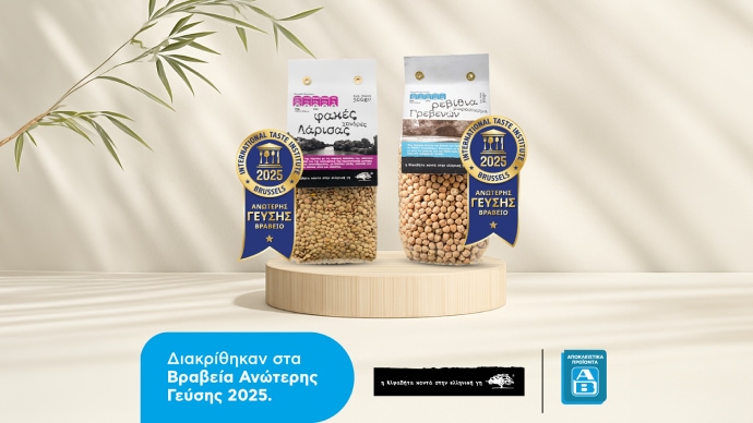 Δύο προϊόντα της σειράς «ΑΒ Κοντά στην Ελληνική Γη» της ΑΒ Βασιλόπουλος διακρίθηκαν για την εξαιρετική τους γεύση στα φετινά Superior Taste Awards, που διοργανώνονται κάθε χρόνο από το International Taste Institute, έναν από τους πιο έγκριτους διεθνείς οργανισμούς αξιολόγησης τροφίμων και ποτών. Συγκεκριμένα, τα προϊόντα Ρεβύθια Μικρόσπερμα Γρεβενών και Φακές Χονδρές Λάρισας απέσπασαν από ένα 1 αστέρι, ανάμεσα σε χιλιάδες συμμετοχές.