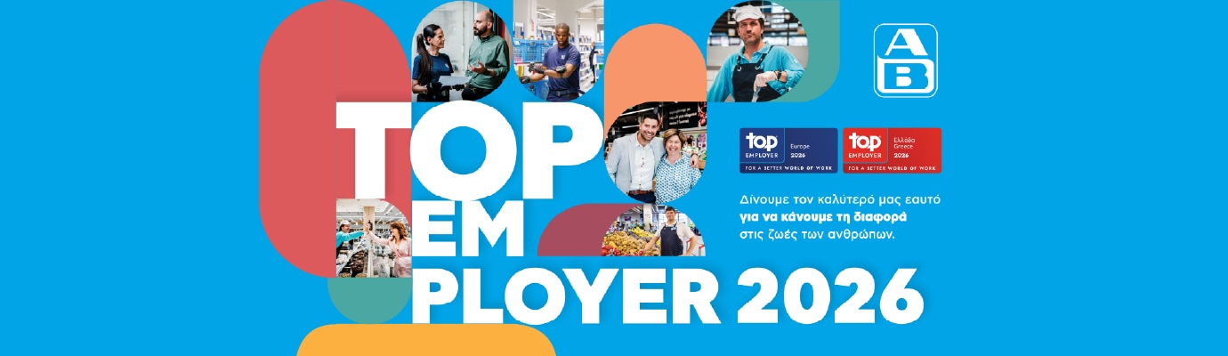 Η ΑΒ Βασιλόπουλος αναγνωρίζεται για 3η συνεχή χρονιά ως Κορυφαίος Εργοδότης στην Ελλάδα, από το Top Employers Institute, τον διεθνώς αναγνωρισμένο οργανισμό που πιστοποιεί την αριστεία στις πρακτικές Ανθρώπινου Δυναμικού. Παράλληλα, ως μέλος του Ομίλου Ahold Delhaize, διακρίνεται ως Top Employer Europe 2026, επιβεβαιώνοντας τη δέσμευσή της για ένα σύγχρονο, υποστηρικτικό και ασφαλές εργασιακό περιβάλλον σε ευρωπαϊκό επίπεδο.